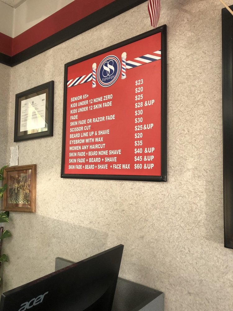Barber 88 offers amenities such as Wheelchair Accessible, Street Parking, Valet Parking, Free Wi-Fi, Accepts Credit Cards, Accepts Contactless Payments, ensuring a comfortable and convenient experience for clients.